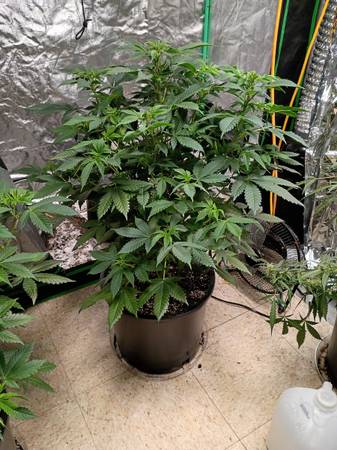This is an Apple Fritter that has been flowered once. Cuttings were taken. She's back in full veg state at the moment. 5 gal pot. I have her on 18/6 light schedule. All her cuttings are flourishing. Any info on this hybrid can be found online. She's filled out a bit more since this pic.
