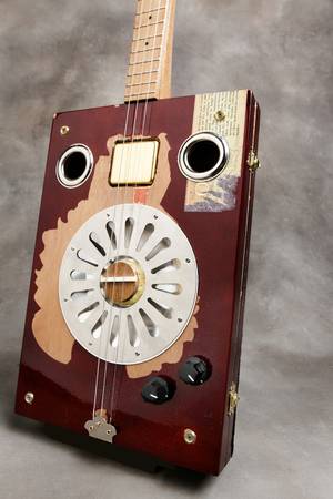 Handmade Cigar Box Guitar. Box dimensions 13"x9"x1.5" with a maple neck and fretboard- 25.5" scale, 3 string,