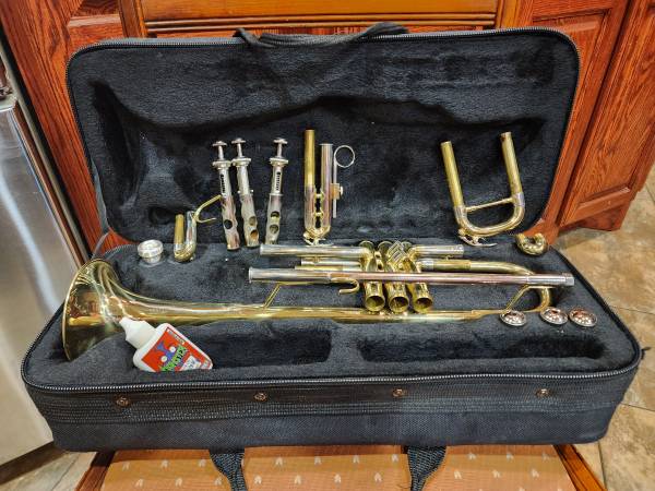 Comes with the original Prelude soft-sided backpack case, Bach 3C mouthpiece, and a partial bottle of Bach valve oil.