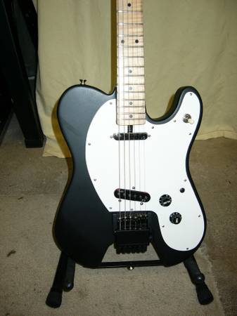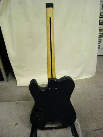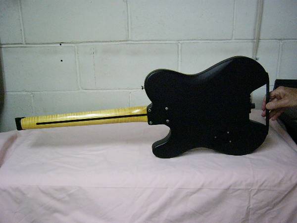 Custom Black Satin Headless Telecaster Guitar with Fender N3 Noiseless Pickups.
