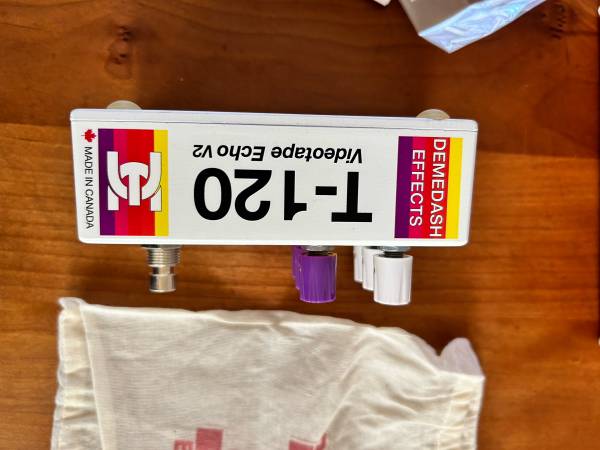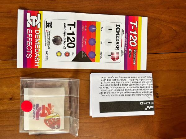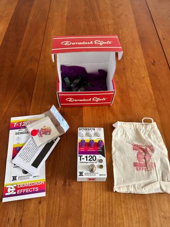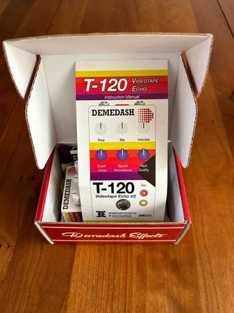 Demedash T-120 in excellent condition. Cool sounding retro tape delay. Does some chorusing as well. Comes with everything that came with it when was new; guides, stickers, cloth bag, unused pick.