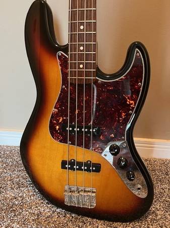 Fender Jazz Bass - American neck (2000) on a MIM body. Plays and sounds great. Includes gig bag. NO TRADES. Text is best Six l two - ate for 5 - six 7 for nine