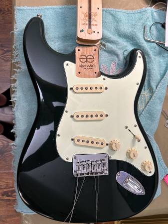 Allen Eden Premier Full Size 1 3/4" Stratocaster Alder Body in British Race Green. AE’s premier series replacement bodies are constructed from high-quality alder. Genuine Fender Locking Strap Buttons.