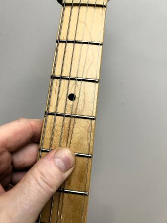 Neck is straight with no fretwear. Plays and sounds great. Body has one small nick (see pic.) otherwise like new condition.