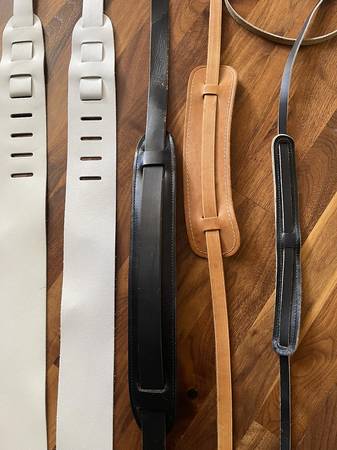 The sale includes all of the straps shown in the photographs. Varying styles, colors, conditions and materials. These aren't marked with a maker.