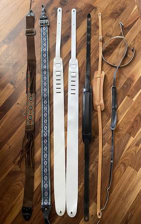 See photos of the actual straps the buyer will receive. The majority are standard electric / acoustic guitar length. The thinner ones may be best for banjo, mandolin or other smaller body stringed instruments. Varying conditions.