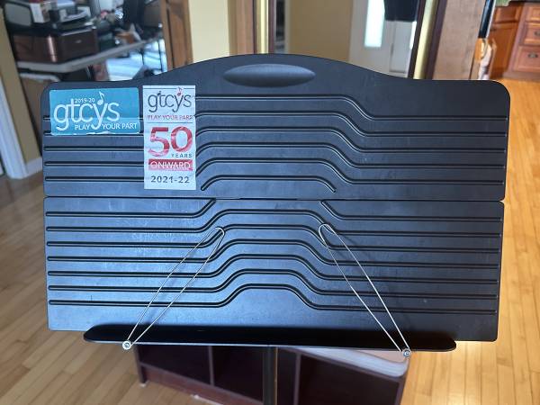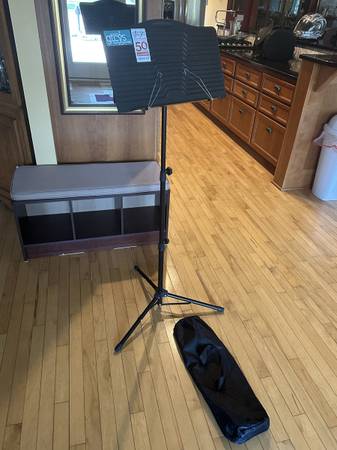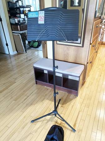 Sturdy black portable stand for sheet music, band/ orchestra/ choir, etc. Adjustable height from short to tall. Great condition. Fully functional. Comes with carrying case. Ready to use & enjoy.