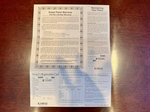 -Make/Model: Kawai 506N, Serial #F105486