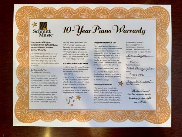 -Maintenance: Regularly tuned and cared for. Includes a Dampp-Chaser Piano Life Saver humidity control system installed.