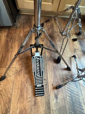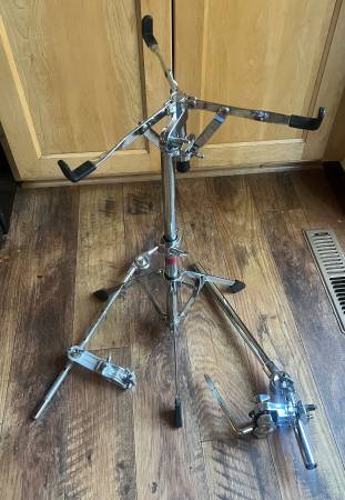 Heavy duty Ludwig universal stand with 3 accessories: Snare/Tom Mount, adjustable cymbal mount,