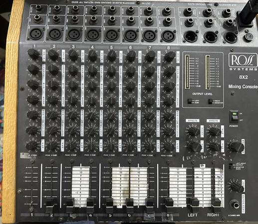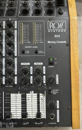 Ross 8x12 desktop sound board. Great console. Fully functional. Perfect for band rehearsal, mobile DJ, or karaoke set up. Has FOH & MONITOR outputs. Ready to use & enjoy.