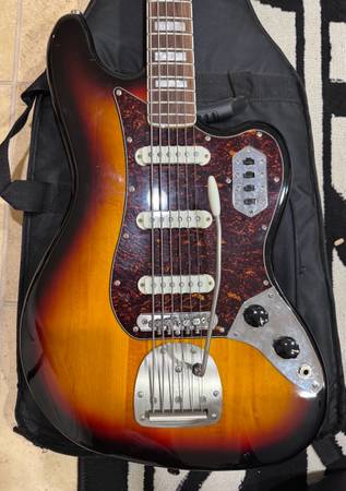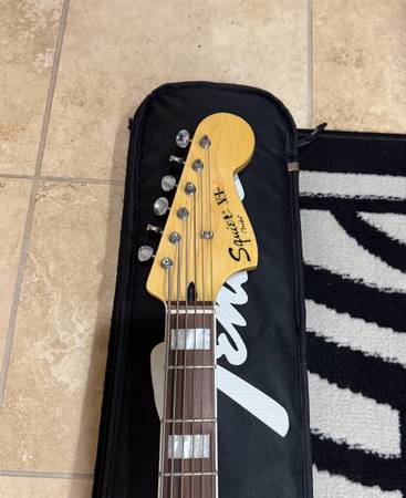 Fender Squier Bass VI Mastery Bridge and Tremelo. Ted Vig wound pickups. Includes gig bag. Get ready to twang!!!