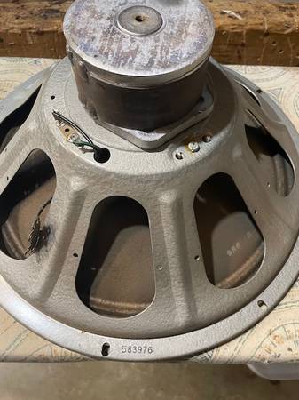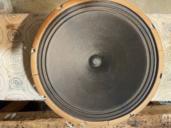 Vintage 8ohm 15" smooth cone speaker. EIA code indicates Magnovox brand however see the photos and info below. My best guess is this is a Jensen speaker manufactured for Magnovox. Huge alnico magnet similar to the vintage Jensen N series speakers with a magnet bell cover similar to Jensens. Likley a diamond in the rough...