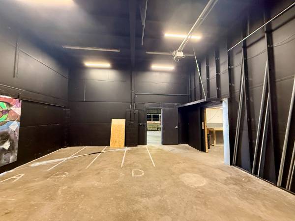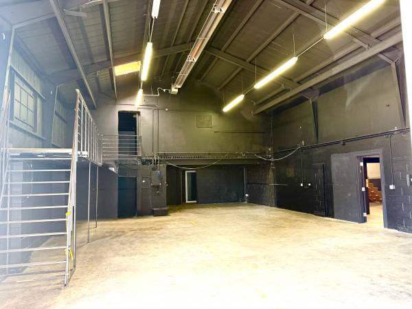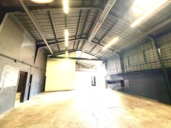 The west side of the warehouse is connected to the east (back) side of the warehouse by a service door. This warehouse area is divided into two areas with the north side of the space being 300 square feet with a mezzanine and the south side being 700 square feet. There is a 10’ high x 11’ wide drive-in overhead door on this side.