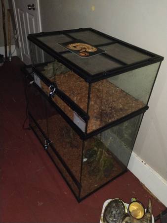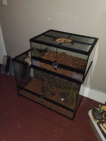 I have 2 nice mint condition exo terra cages will be cleaned out i got a ton of decor if looking but selling cages alone 36x24x18 is bigger 1 24x18x12 is smaller 1 pm if interested can discuss...