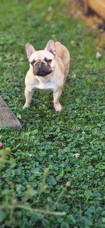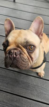 17-20 lb fawn 14 month old Frenchie. Got out of fenced in back yard. She is pretty new to us. Service Dog for PTSD. Please, please help us find her. Reward!
