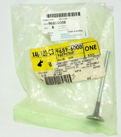 OEM 96896008 GM Valve Intake Exhaust Engine Exhaust Valve 2004-2011 Chevrolet Aveo 2010 Pontiac G3 All reasonable offers are considered. Thanks!