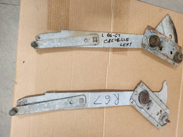 Wiring harness and fuse box. $130. 67 right door $200. Really wheel centers $10. each. 67 chevelle right 1/4 extension $75. 66 chevelle right and left 1/4 extensions $50. Door latches $75. each. Vent windows $50. each. New 3 core aluminum radiator with dual electric fans $250. Will also fit 63 to 68 full size chevrolet impala bel air 69 chevelle like new header panel $100./ moldings and emblem are perfect.