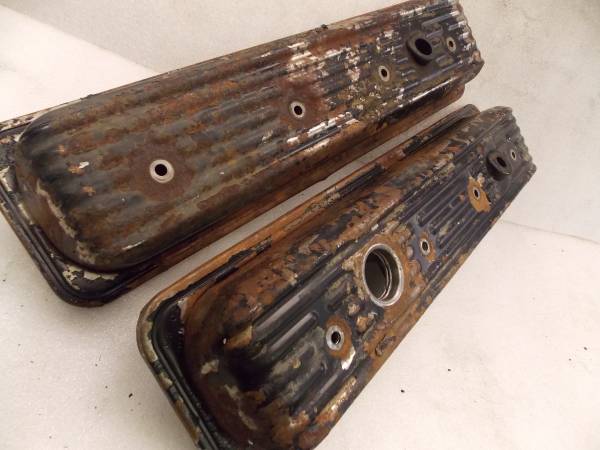 1987-00 Chevy Valve Covers Vortec GMC V8 305 5.0 & 350 5.7 Center Bolt Stock OEM .These have been washed in an Engine spray washing Machine and are ready to bolt on your Cylinder Heads, you can wire wheel them and Paint them to look good again. Fits the Factory T.B.I. and the Vortec engines. If you need the bolts we have them on hand also. We also have another set that are much prettier $45.00 for that set(last few pictures. they have been washed also) Call (952)854-5 seven eight six
