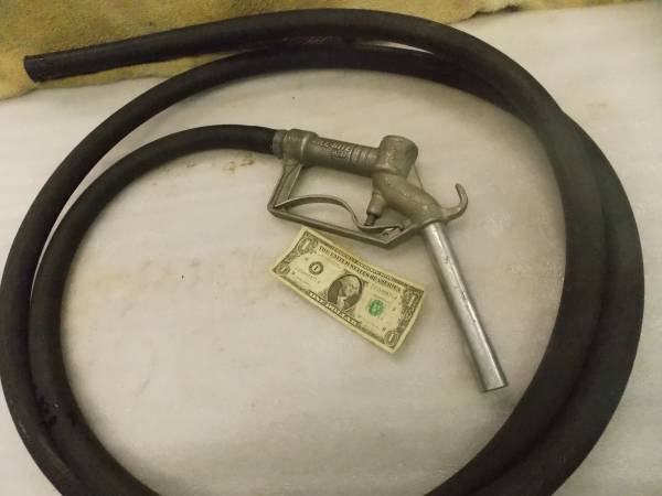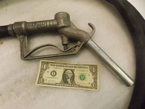 Husky FRHMN Fill Rite Fuel Pump Manual Nozzle with Hook 274L 1" fill Nozzle for Gas, Diesel and/or all or Many Farm or Industrial Fluids. It has a great shape 12 foot Hose . The Pump Nozzle seal is good and doesn't have any leaks. If you have auxiliary Fuel Tanks you use to transfer fuel to Tractors or other off road equipment, this can be a huge safety unit for proper gas tank filling. Call (952)854-5 seven eight six