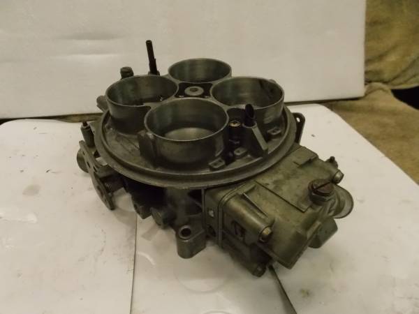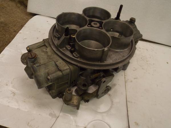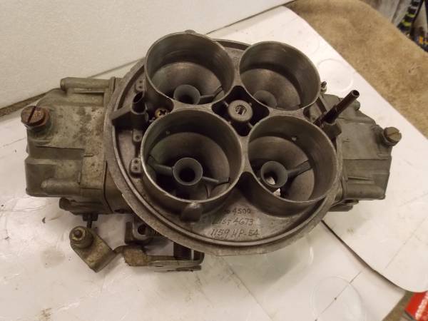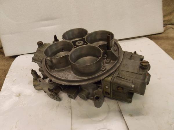 Here's a HOLLEY 12r-4325B Vintage Dominator 1050 CFM List 4673 Annular Discharge Boosters and 50cc Accelerator Pumps.This great Carb is ready for your Large Cubic Inch Big Block Engine. Drag Boat Mud Truck Racing or maybe Nostalgia Street Rod or Ratrod Show Car. This Carburetor was working great the last time my friend raced it.He upgraded to a fuel injection and he cleaned the race gas out of this and put it in a box in his basement workshop. This was professionally upgraded to Annular Discharge and 50cc accelerator pumps .It still has the original early 1970's extended airhorns and it has numbers engraved in it Mod 4500 List 4673 and 1159 HP-54 .Look this over and ask any questions. You may be able to bolt it on and go, or it's usually a good idea to change the bowl gaskets so you can change jets easily. Looks like it's only missing one Plastic accelerator pump cam (easy to get cheap).Buy with confidence. This is the real deal. Call (952)854-5 seven eight six