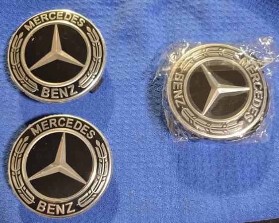 Mercedes-Benz wheel center hubcap. It's designed to fit into the center of a Mercedes-Benz wheel, covering the hub and adding a stylish finish.