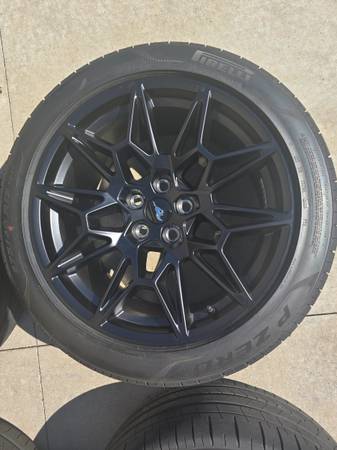 Brand new Pirelli P Zero tires with Ford Mustang factory wheels. These are fresh off my new 2025 Mustang and have less than 100 miles on them. Wheels are 19"x 9 and 19"x9.5". Tires aer 255/40ZR19...