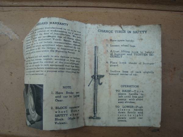 The car was equipped with this aftermarket hydraulic bumper jack and wheel block kit. I have the original sales invoice for the 1949 Cadillac that lists this jack and wheel block kit as a separate line item.