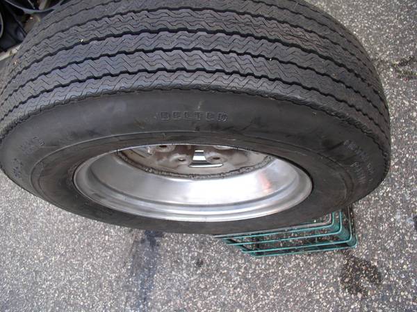 This has been in the trunk. New condition BUT Years old. Tread and sides have rubber nubs RED LINE tires this size are about $500 EACH ($487+ TAX = Shiipin)