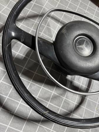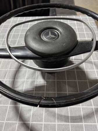 From a 1972 Mercedes W108/W109. Used vintage steering wheel includes hub. All components original to this steering wheel. Minor cracks, scuff marks. No returns.