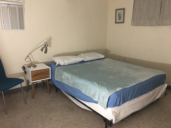 One furnished bedroom available in nice 4 bedroom home. Share bath, extra kitchen, living room, Lower level A/C. Quiet home great yard.