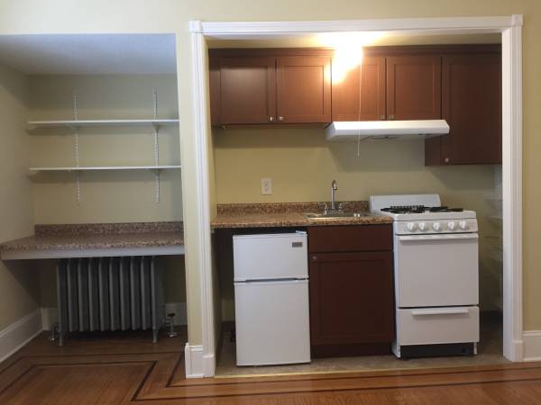 1 Room efficiency apartment available 11/01/25. It is on the 2nd floor facing south of a 3 story, super quite house centrally located in an residential area of Lake of the Isles/Uptown. Renovated a few years ago and has new floors, new ceiling, new cabinetry, new appliances, ceiling fan/light, new paint, sink, shelving and counter tops and a bonus desk area (as seen in the photos). You would be sharing a full size bathroom with the gal across the hall. It is 247 square feet. It is approximately 11" x 11" room with an 3" x 4 1/2' closet and a 3' x 3' x 4'3" desk area. On site washer and dryer in lower level and a private fenced in back yard.