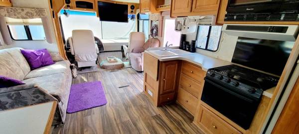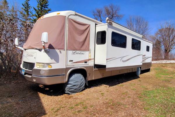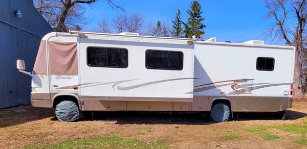 34 foot. Class A. Only 55,000 original miles. 8.1 Vortex. Features 2 large slide outs, newer flooring, new cooling unit and hot water heater. Several large storage compartments. Queen size bed plus full size full out bed. $16,499 OBO. Located in Mound, MN for showings. Serious inquiries only please.