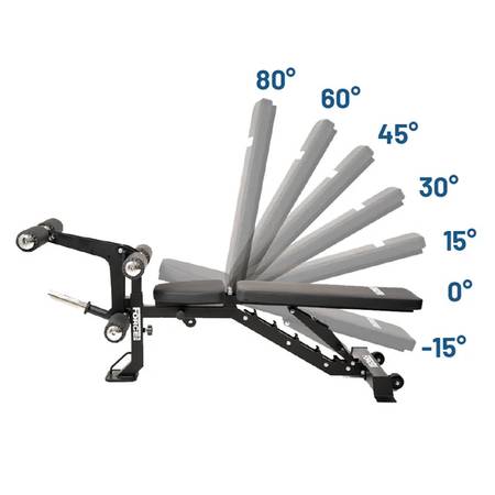 The Force USA MyBench adjusts quickly and easily from Flat to Incline to Decline thanks to our laser cut, shark tooth design. Plus, it includes a separate leg extension and height-adjustable preacher curl attachment for greater versatility in your workouts!
