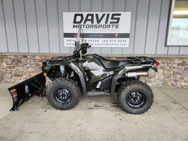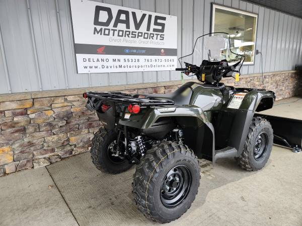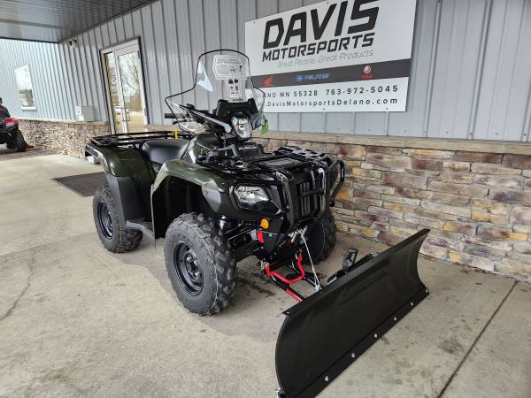 GET A NEW 2024 HONDA RUBICON WITH HONDA WINCH, HONDA PLOW, HONDA HEATED GRIPS AND HONDA WINDSHIELD FOR $ 12,449.00 NOW AT DAVIS MOTORSPORTS IN DELANO. NO FREIGHT OR SET UP CHARGES!! YOU SAVE $ 1,700.00 NOW!! NOT ONLY DOES THE RUBICON COME WITH POWER STEERING, DCT TRANSMISSION AND INDEPENDENT REAR SUSPENSION, WE HAVE ADDED A HONDA WINCH, HONDA PLOW, HONDA HEATED GRIPS AND HONDA WINDSHIELD!! You are ready for whatever mother nature can throw at you., MSRP on this model TRX520FA6 as equipped is $ 13,599.00 + $ 620.00 freight. You are ready to clear the driveway, get to the deer stand, clear a path to the ice house or for the ice rink. This machine will do it with ease. The 2024 Honda Rubicon features the updated reverse shift system. Now all electric shift or automatic Honda Rancher's, Foreman's and Foreman Rubicon's feature Honda's new electric reverse shift system. No more cumbersome push the button pull the brake bah blah blah!!! Simply hit the button when moving forward in 1st or 2nd gear and the shift system will shift to reverse. When backing up, push the button again and your back in 1st gear moving forward!!! Other great features include a new 518 cc Honda fuel injected liquid cooled engine delivering more power and torque, a higher output alternator to run additional accessories, Steel front and rear cargo rack systems. The Rubicon’s racks feature strong, steel construction, but now they include a larger flat area. Better yet, they’re designed to integrate with our new Honda Pro-Connect™ system. You can quickly attach and detach accessories like our cargo boxes, without tools, for added flexibility and convenience. Maxxis tires, Designed to work perfectly with the Rubicon’s Independent Rear Suspension, the Maxxis tires feature an aggressive tread pattern for excellent traction in mud, sand and rocky terrain. New front grill style, new 1.9 liter front storage, he perfect size for small items you want to access quickly—like a cell phone, GPS, or a spare pair of gloves. and larger front driveshaft guards. The Honda Rubicon also retains all the great features that makes it such a great ATV like, longitudinally mounted engine with direct drive 5 speed transmission that can shift automatically or with the flip of a switch you select the gear you need, shaft final drive eliminating all belts and delivering all the power to the wheels, 4 wheel dual A arm independent suspension, Honda electric power steering to smooth out the roughest trails and reduce driver fatigue, TraxLok differential controls for 2 wheel, all wheel and 4 wheel lock, 2 speed transfer case, front and rear preload adjustable shocks, digital display, 3 headlamp lighting system, and a heavy duty front bumper. All Honda ATV's come with a 1 year Honda unlimited mileage warranty. Great finance options on approved credit. Prices do not reflect applicable freight, tax, and license fees. All rebates to dealer. See the new Honda's at Davis Motorsports in Delano or call us at 763.972.5045 if you have questions, ask about unit A-5578. polaris sportsman canam can am yamaha