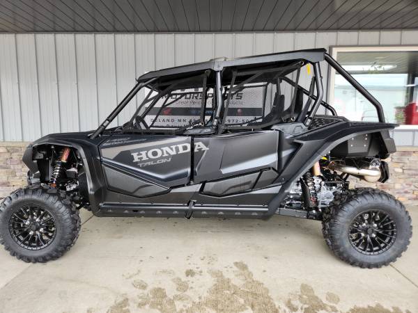 GET YOUR NEW 2025 HONDA TALON 1000X-4 FOR ONLY $ 21,498.00 NOW AT DAVIS MOTORSPORTS IN DELANO. NO FREIGHT OR SET U P CHARGES!! YOU SAVE $ 2,700.00 NOW!MSRP on this model # SXS10S4XS is $ 22,899.00 + $ 1,370.00 freight. The Talon 1000X-4 is your ticket to shared adventure on tight trails and technical terrain. With room for four, it’s certain to leave a smile on everyone's face. Powered by Honda's legendary 999cc Unicam® engine delivering sure, reliable power in all conditions. The most reliable drivetrain in the industry features Honda's reliable and smooth automatic Dual-Clutch Transmission. The Honda automatic Dual-Clutch Transmission (DCT) boasts a class-leading gear-driven setup, giving you manual paddle shift control, or with the flip of a switch, let the transmission take full automatic control. It has efficient power delivery, true engine braking, and superior performance to belt-driven CVTs. The brain of the DCT, Advanced Transmission Logic, senses how you drive and adapts. Relaxed drivers get earlier shifts, while for sportier drivers, it will hold each gear longer. And when going downhill, you get true engine braking. You get the necessary torque in all six gears with a 42-percent gear reduction between High and Low range. This comes in handy when rock crawling or scaling hills. Hill Start Assist prevents rollback when transitioning from brake to accelerator. It also works on downhill grades. Dual A-arm front suspension gives you 14.4 inches of travel in the front. Pair that with the stellar ground clearance, and you begin to understand why they handle rough terrain so well. Rear suspension features Honda's 3-link trailing-arm rear suspension is one of the secrets to its precise handling, while a generous 15 inches of rear-wheel travel helps give you a smooth ride and superior control. Off-road driving can be challenging, and rough terrain can be unforgiving. We offer generous skid protection and a wide range of accessories to help protect vulnerable undercarriage and suspension components. The specially designed full-coverage roof diverts rainwater from occupants and is aerodynamic when transporting the vehicle in either direction on your trailer. The standard front bumper offers more vehicle coverage than some other side-by-sides and is designed to slide smoothly over obstacles in rough conditions while providing good protection. These are the only side-by-sides offering an automatic gear-driven transmission with Launch Mode. You won’t believe how fast you’ll come off the line–and neither will the other riders. A tilt steering wheel makes high-performance driving even more comfortable. Additionally, the tilt-wheel function makes getting in and out easier and holds the steering column mounted gauge set. All Talon models have a large, steering-mounted LCD instrument cluster that displays important information such as speed, fuel levels, and more in an easy-to-read format. Great finance options on approved credit. Price does not reflect applicable freight, tax, and license fees. All rebates to dealer. Get your new Talon at Davis Motorsports in Delano or call us at 763.972.5045 if you have questions. polaris rzr ranger general can am canam maverick commander wolverine yamaha