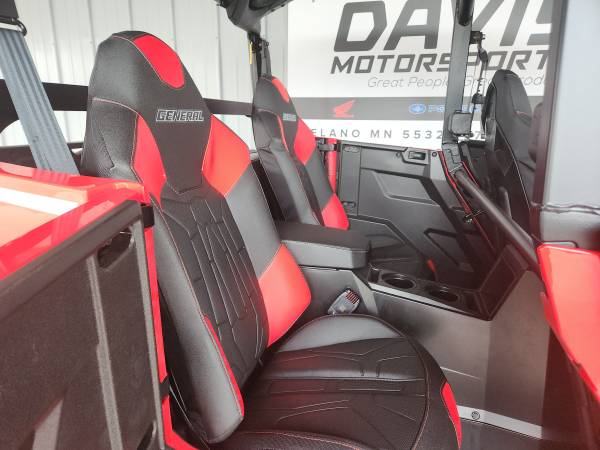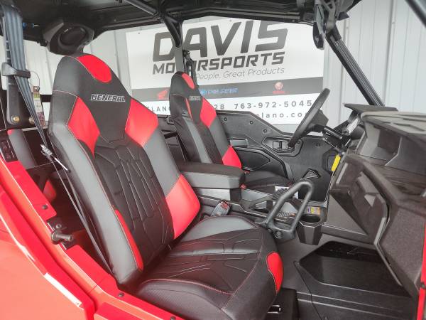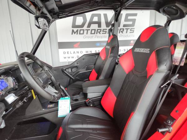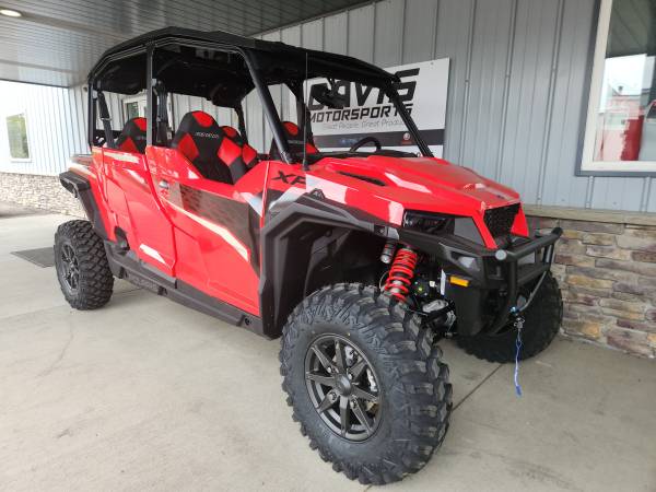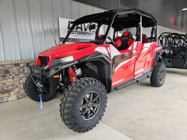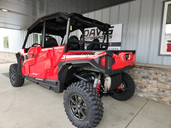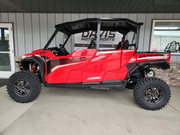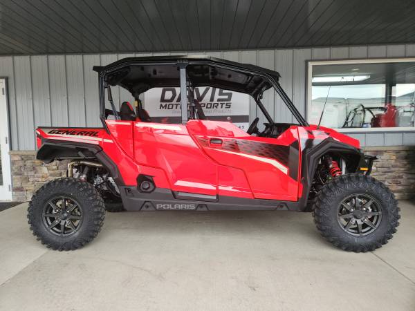 GET YOUR NEW 2025 POLARIS GENERAL XP 1000 ULTIMATE EDITION CREW CAB WITH RDE COMMAND FOR ONLY $ 25,149.00 NOW AT DAVIS MOTORSPORTS IN DELANO. SAVE $ 8,100.00 NOW! NO FREIGHT OR SET UP CHARGES!! MSRP on this machine is $ 31,999.00 + $ 1,295.00 freight. The Polaris general XP1000 Crew Cab is the best all-around crossover side by side for you and 3 of your friends or family! 4 super comfortable bucket seats with seat belts, center consoles and cup holders for everyone! It is great for recreational riding and when it comes to doing chores, it is ready to go! The General Ultimate 4 seat has great cab features like the Polaris Ride Command audio/gps system! Control your rig right from your dash using the 7" Display, powered by RIDE COMMAND. With configurable gauges, Bluetooth connectivity, integrated camera, and more, you're in for a ride almost as smart as you. Bring all your favorite music along for the ride—and campsite—with off-road optimized Rockford Fosgate® Audio. Powered by Polaris' 100 HP twin cylinder engine. The Polaris CVT transmission delivers smooth even power. The transmission also features a low range for heavier work or technical riding as well as a park range for added vehicle security. The Polaris on demand traction system allows you to control the traction required with the flip of a dash mounted switch. You can select 2 WD, AWD and there is a "Turf Mode" for when you are driving on delicate surfaces. Always be prepared for work and fun with a 600-lb. dumping cargo box that allows you to bring the gear and supplies you need. Equipped with 15" aluminum wheels, 30" 8-ply road tires that provide sure-footed traction, strength and durability, and trail-ready 13.5" ground clearance so that you can confidently take on the roughest terrain. Whether you need to haul firewood to camp, carry gear for a long stay in the wild, drag logs off the trail or pull a trailer full of gear, you can do it all with a 1,500-lb. towing capacity. The Polaris HD Plus 4,500-lb. winch featuring synthetic rope will help you confidently clear downed logs, get out of tough situations or set your line up a steep climb. The hard panel rough protects you and your General from harsh environments. The LED lights provide superior illumination and use far less energy than regular lights. Great finance options on approved credit. Prices do not reflect applicable freight, tax, and license fees. All rebates to dealer. Get your new Polaris at Davis Motorsports in Delano or call us at 763.972.5045 if you have questions. can am canam commander kawasaki