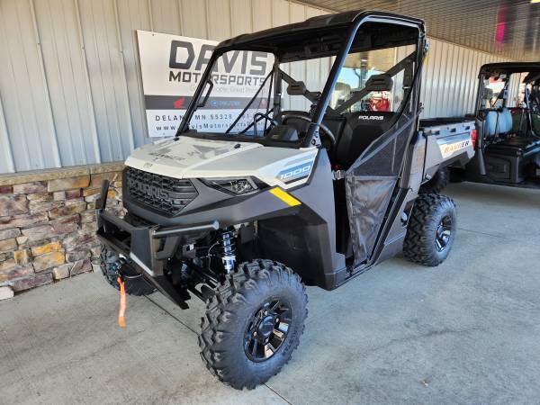 GET YOUR 2025 POLARIS RANGER 1000 PREMIUM NOW WITH 4,500 LB WINCH, HARD PANEL ROOF AND 2 YEAR WARRANTY FOR ONLY $ 15,988.00 + $ 700.00 FREIGHT NOW AT DAVIS MOTORSPORTS IN DELANO. YOU SAVE $ 2,400.00!! New upgrades for the 2025 Polaris Ranger 1000 premium include a factory installed roof and 4,500 lb. winch with synthetic rope and auto stop AND 2 year Polaris warranty! The RANGER 1000 is built with a strong one-piece chassis and beefed-up front drive to take on the toughest jobs—day in and day out. Powered by Polaris' 1,000 class twin cylinder, liquid cooled, SOHC engine delivering 61 HP. Polaris Gen 2 CVT clutch and transmission provide effortless automatic driving. The transmission features a low range for heavy and technical work as well as park for added security when you are not in your Ranger. Polaris "On Demand" traction system provides locked differential and all wheel drive with the flip of a dash mounted switch. There is a turf mode for delicate surfaces as well. Aluminum wheels, Polaris electric power steering, 4 wheel disc brakes, a 2,500 lb. towing capacity and 1,000 lb hauling capacity in the assisted dump box, chassis skid plates and digital instrumentation round out this great Ranger. Great finance options on approved creidt. Price does not reflect applicable freight, tax and license fees. All rebates to dealer. Get your new Polaris at Davis Motorsports in Delano. or call us at 763.972.5045 if you have questions..
