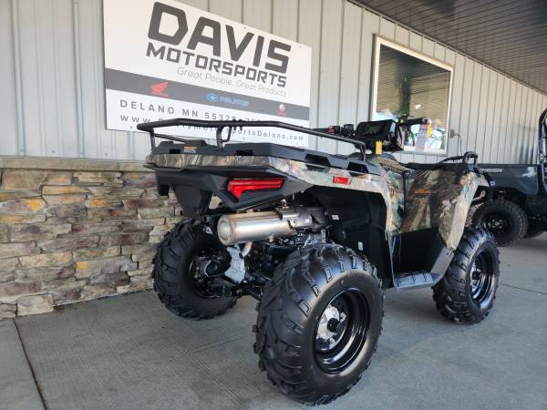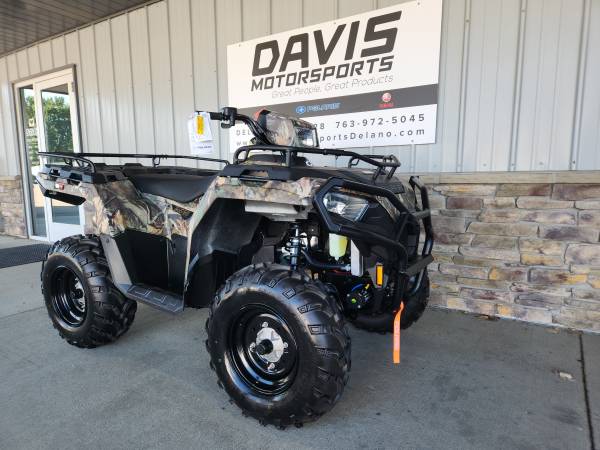 GET YOUR NEW 2025 POLARIS SPORTSMAN 570 POWER STEERING WITH SUPER TOUGH CAMO FINISH AND POLARIS WINCH INSTALLED FOR ONLY $ 8,549.00 AT DAVIS MOTORSPORTS IN DELANO.SAVE $ 2,600.00 NOW, NO FREIGHT OR SET UP CHARGES! MSRP on this ATV is $ 10,599.00 + $ 595.00 freight. Our certified Polaris technicians have installed a Polaris winch with a slick handlebar mounted control and a quick release spool. You also get super tough camo finish and power steering on this Sportsman!! The most trusted ATV in the industry just got better. The Sportsman 570 has greater smoothness, strength and versatility than ever before, and all coupled with a bold design and our legendary ride & handling. Polaris electric power steering takes the work out of all day riding. Less fatigue on rough terrain for more fun in the saddle! Great features include; a relocated battery with 78% more old cranking amps than before, all sealed suspension bushings, towing capacity improved to 1,350 LB., 6 ply 25" tires, ground clearance increased to 11.5", triple 50 watt halogen headlamps, updated front and rear storage racks for more versatility and convenience, a steel front rack extender, and Sportsmans' are now pre wired for a winch and for hand and thumb warmers. All wrapped in bold looks. Underneath the aggressive look, you’ll still find the heart and soul of a Sportsman. The Sportsman 570 still has all the great elements that made it what it is, a Prostar 44 HP fuel injected liquid cooled motor, Polaris CVT transmission with low range and park, Polaris true one touch ON DEMAND all wheel drive, full digital instrumentation, and Polaris' 4 wheel independent suspension. Check it out and see why this is a number 1 seller! Great finance options on approved credit. MSRP does not reflect applicable freight, tax, and license fees. All rebates to dealer. See the Polaris line up at Davis Motorsports in Delano or call us at 763.972.5045 if you have questions. Includes Polaris Winch 2884832 $ 449.99 + installation