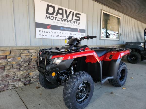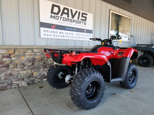 GET YOUR NEW 2026 HONDA RANCHER 420 WITH MANUAL SHIFT AND SOLID REAR AXLE NOW FOR ONLY $ 7,349.00 AT DAVIS MOTORSPORTS IN DELANO. SAVE NOW. MSRP on this model, TRX420FM1 is $ 7,349.00 + $ 620.00 freight. If you wanted old school reliable and tough, this is the ATV for you. This rancher features a 5 speed direct drive "boot shift" transmission. Combined with the shaft drive to the solid rear axle, this is the most reliable drivetrain in the off road industry. The fuel injected, liquid cooled 420 Honda engine provides ample torque for the tough jobs. No belts or chains to wear or slip. You can easily have superior traction optimization with Honda's TraxLok® system, which offers two modes: 2WD and all wheel drive. Honda's rear swingarm-style suspension with a solid axle, providing superior capabilities for towing and hauling. Its long suspension stroke and plush seat allow you to tackle your favorite trail or the toughest chores in comfort all day long. Discover unmatched versatility with Honda durable steel racks. Equipped with Pro-Connect system, they enable easy attachment and removal of cargo boxes and accessories, enhancing functionality. Digital instrumentation provides easy access to all pertinent info for you. Built to perform and designed to last, the Rancher delivers excellence without compromise. Honda ATV's all come with a 12-month Honda unlimited mileage warranty. Great finance options on approved credit. MSRP does not reflect applicable freight, tax, and license fees. All rebates to dealer. Get your Honda at Davis Motorsports in Delano or call us at 763.972.5045 if you have questions. polaris sporsman can am canam