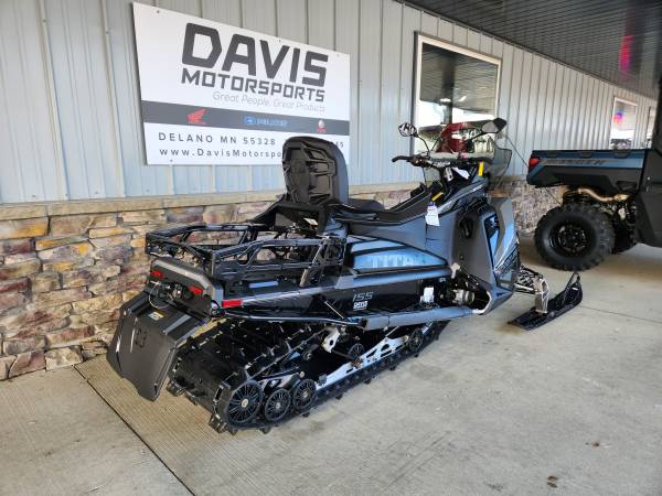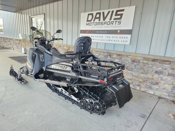 GET YOUR NEW 2025 POLARIS 650 TITAN ADVENTURE 155 FOR ONLY $ 14,949.00 NOW AT DAVIS MOTORSPORTS IN DELANO. !! ALSO, PURCHASE IN OCTOBER AND RECEIVE A FREE GO PRO MAX 360 AND SD CARD!! NO FREIGHT OR SET UP CHARGES! YOU SAVE $ 3,900.00!! All of our sleds are BRAND NEW and have been stored indoors to keep their condition new!! MSRP on this sled is $ 18,199.00 + $ 700.00 freight. Whether your work is work, or your work is fun—comfort, control and toughness are engineered right into the TITAN. From the tundra, to the trails, to the deep snow, explore further with confidence. The TITAN on the Matryx platform is built for work and play. The narrow cockpit provides improved rider connection to help you move around the sled in deep snow for balance or on-trail for precision. Power and efficiency with the Patriot 650, the 650 Patriot is smooth, powerful and features quick throttle response. Designate waypoints including worksites or ice fishing spots, access millions of miles of trail mapping, and more with the 7S Display Powered by RIDE COMMAND- even when you're in the most remote places without cell service. The patent pending, BackTrak20 Rear Suspension is our next-generation of articulated rear suspensions. Designed with revised geometry to climb on top of the snow. Forward or reverse. Featuring a massive 20" x 155" Cobra two-ply track, in either 1.5" or 1.8" lug height, the TITAN combines flotation and traction to allow you to explore more. Includes an easy to install, Lock & Ride 2-Up seat with improved wind protection for added comfort, the Matryx TITAN allows you ride solo or share the adventure. Like all TITAN Adventure models, this one features a standard tow hitch, work light, and integrated rack with optional storage box to get more done. Plus. Polaris-Engineered accessories allow you to outfit your TITAN for whatever the day calls for. Great finance options on approved credit. Price does not include applicable freight, tax, and license fees. All rebates to dealer. Get your Polaris sled at Davis Motorsports in Delano or call us at 763.972.5045 if you have questions. ski doo skidoo arctic cat