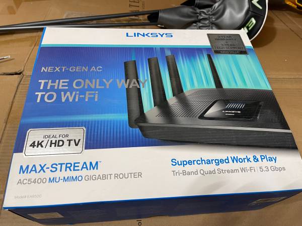 I have a Linksys AC5400 Max-Stream gigabit router. It was used in a office setting and become available as the business was closed during the COVID pandemic. SOLD AS IS