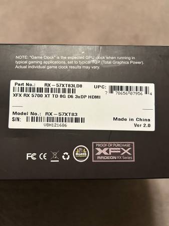 Selling a like new 5700xt XFX GPU. Comes with box and it’s in like new condition. In working condition. $100.00. Cash and local buyers only. Can meet in the metro area.