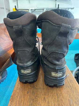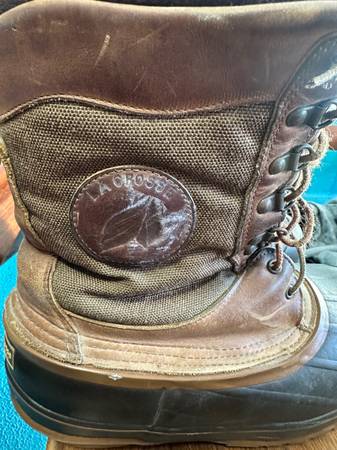 First pictured Lacrosse are size 10 and would be great for ice fishing or sitting in a deer blind. Heavy bottom but thick and insulated. Very warm.