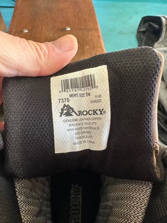Last set is a set of Rocky 800 gram thinsulate hiking/hunting boot size 8M. The laces for this boot were harvested for another so they will need a set of laces
