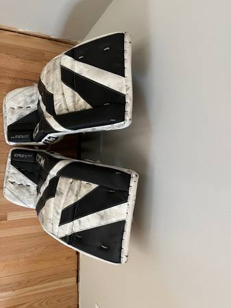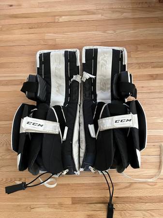 CCM Goalie Pads 31+1 White with black Buckles, Velcro, and straps are good No tears on the pads Eflex 5.9 Good conditon $620 new Cash and local pick up only. Ad will be removed when sold.