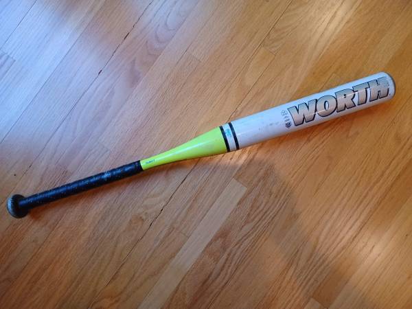 Yellow and white Worth Toxic softball bat. 30 inch. 19 oz. Used. No dents. Pickup in Eden Prairie