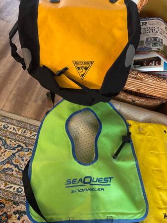 Two great items on price waterproof safety bag whitewater rafting, canoe and boating safety adult float SeaQuest Snorkler and valuables carry container . Excellent condition. show contact info