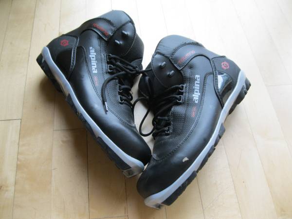 Pre owned cross country boots with very light marks/wear/discoloring. The inside has been sprayed with fabric odor eliminator. Okay to try on before buying. Not combi boots.