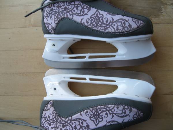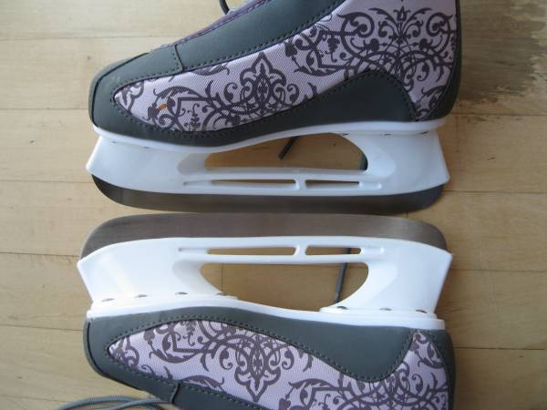 Pre owned skates with light marks/wear/discoloring. No rust on blades. The inside has been sprayed with fabric odor eliminator. Okay to try on before buying.